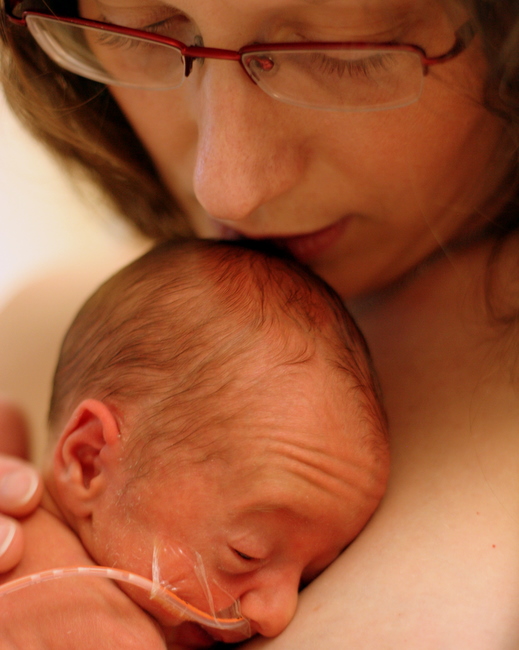 When you look at these pictures you may say, “Well, what the hell is that tube up my nose?” Since you’re just at 34 weeks, your suck and swallow reflexes are just forming so that tube is helping get mama’s milk to your belly while letting you concentrate solely on breathing. Those three things are difficult to do all at once.